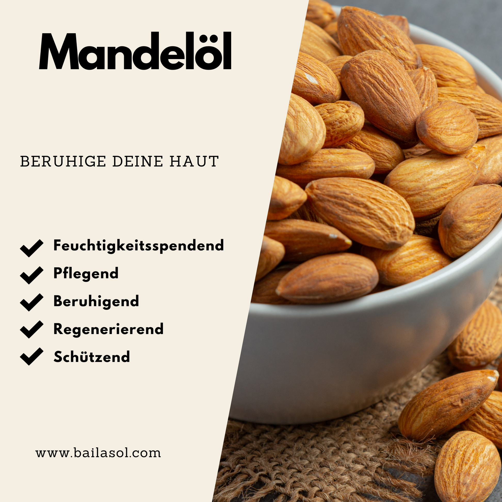 • Mandelöl: Strafft & beruhigt – für geschmeidige, elastische Haut